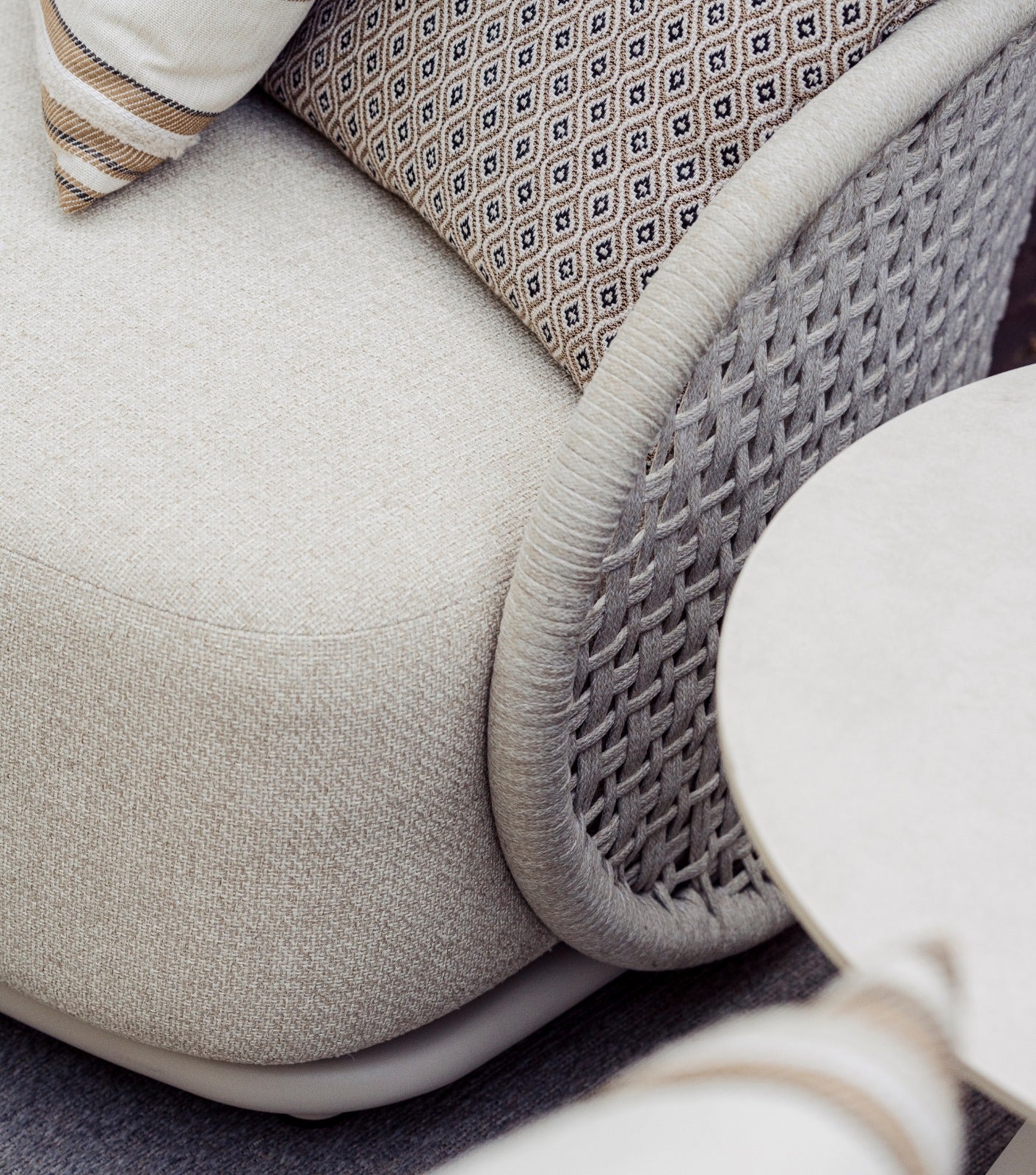 Die Amora Lounge ist mit Sunproof-Stoff ausgestattet. Der Sunproof-Stoff überzeugt in vielen Aspekten. Der Stoff ist wasserabweisend und trocknet extrem schnell, was sie zur perfekten Outdoor-Lounge macht. Aber das war noch nicht alles, denn der Stoff ist auch enorm schmutzresistent. Dazu kommt noch, dass die Lounge sehr bequem und strapazierfähig ist. Für den besten Sitzkomfort des Stoffes ist er auch atmungsaktiv. Wir empfehlen, für die längste Haltbarkeit des Stoffes bei kleinen Verschmutzungen nur mit lauwarmem Wasser und einem weichen Pinsel zu agieren. Bei größeren Verschmutzungen noch milde Seife dazugeben.
