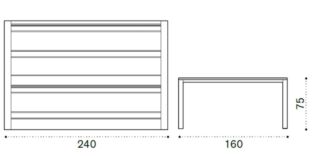 Ein imposanter Tisch mit klarer Formensprache, ideal für große Gesellschaften im Garten oder auf der Terrasse.