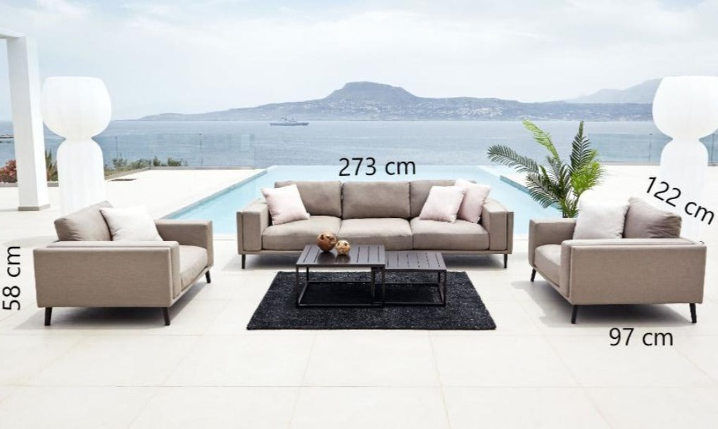 Ausgestattet mit Sunbrella®-Outdoorstoffen und Quick Dry Foam, bleibt er farbstabil, trocknet schnell und sieht auch nach Jahren noch aus wie neu.