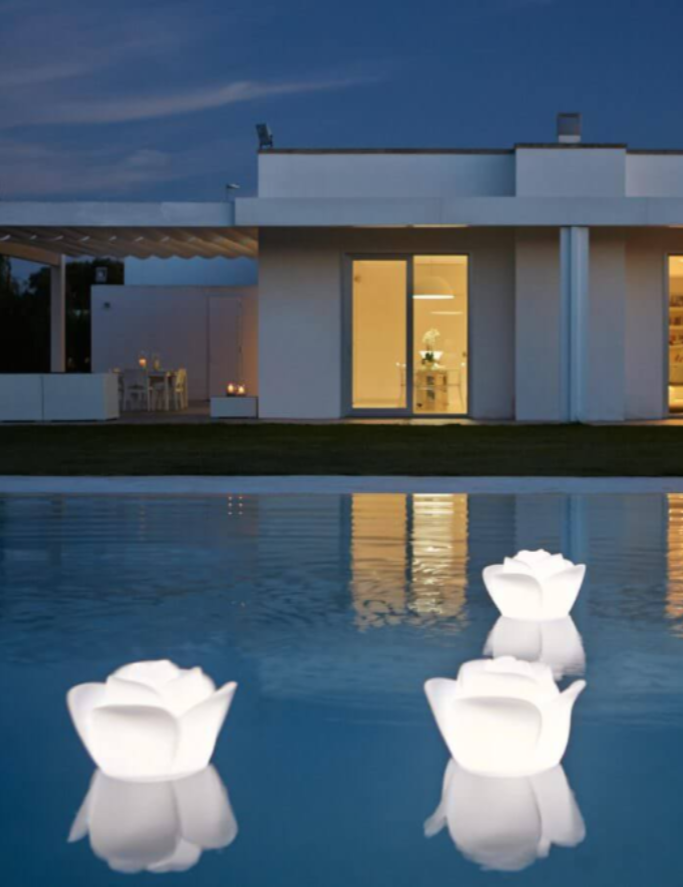 Die Baby Love ist von einer Tulpe inspiriert und hat einen verstellbaren Stiel aus Aluminium. Sie passt auch aufgrund der verstellbaren Lichter exzellent für jeden Zeitpunkt. Egal, ob am Abend mit den Freunden etwas trinken oder alleine am Pool entspannen – sie wird für jeden Augenblick das richtige Ambiente schaffen.
